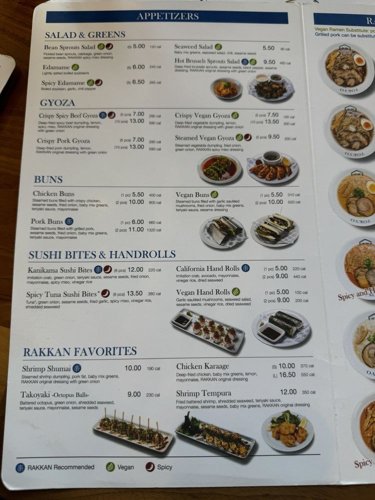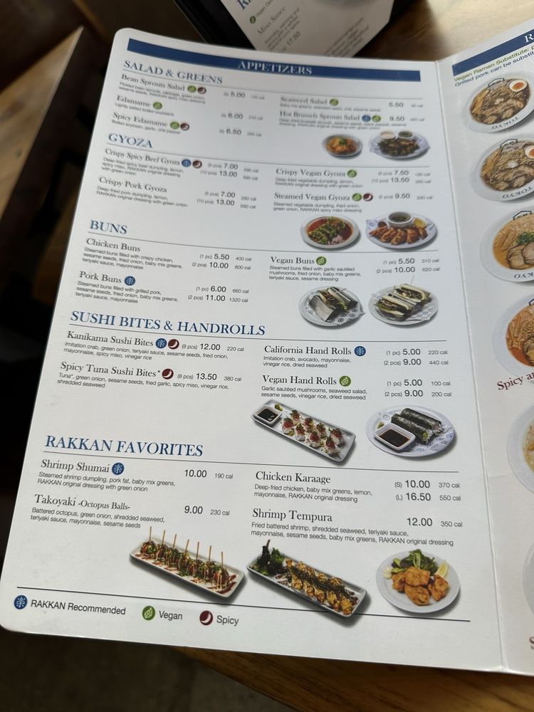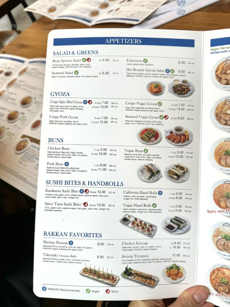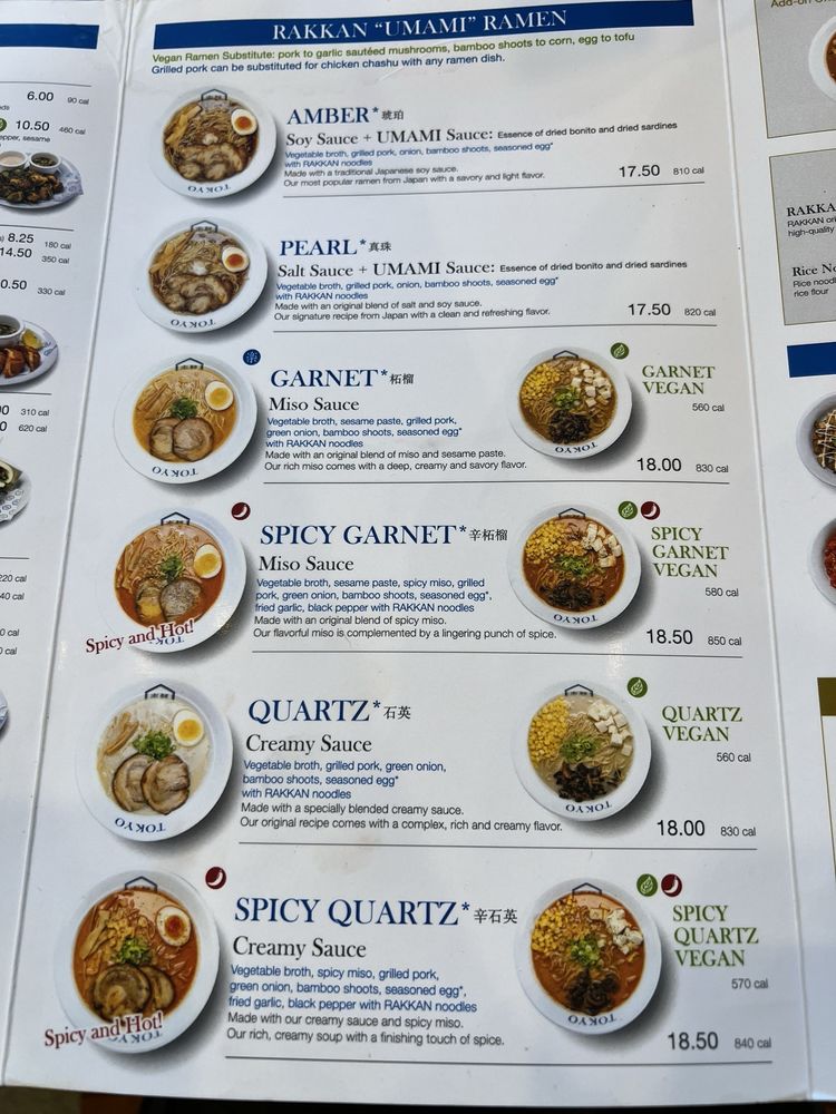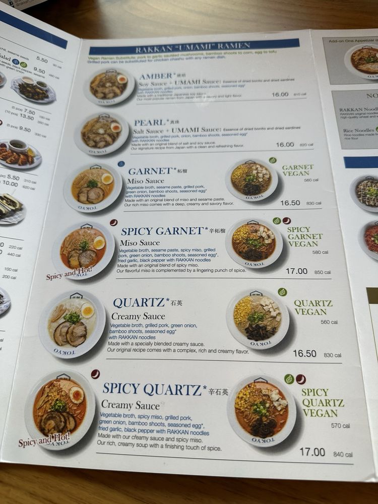 RAKKAN Ramen - Tustin offers a diverse menu featuring items like Edamame, Spicy Cucumber Salad, Hot Brussels Sprouts Salad, Salmon Sushi, Aburi Shrimp Sushi, Crispy Pork Gyoza, and Crispy Vegan Gyoza. Customers rave about the Spicy Quartz Ramen with creamy, rich broth and tender pork chasu. The vegetable-based Pearl Ramen surprises with its flavorful broth. The restaurant's consistency across different locations impresses patrons. Special partnerships, like the BOGO ramen offer with The Alley in Fountain Valley, add value to the experience. With a welcoming atmosphere, RAKKAN Ramen in Tustin stands out as a top spot for delicious ramen and unique flavors.
